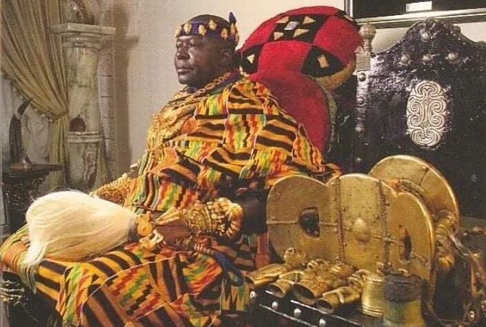 The reigning Asante King Otumfuo Nana Osei Tutu ll; on his left is the...