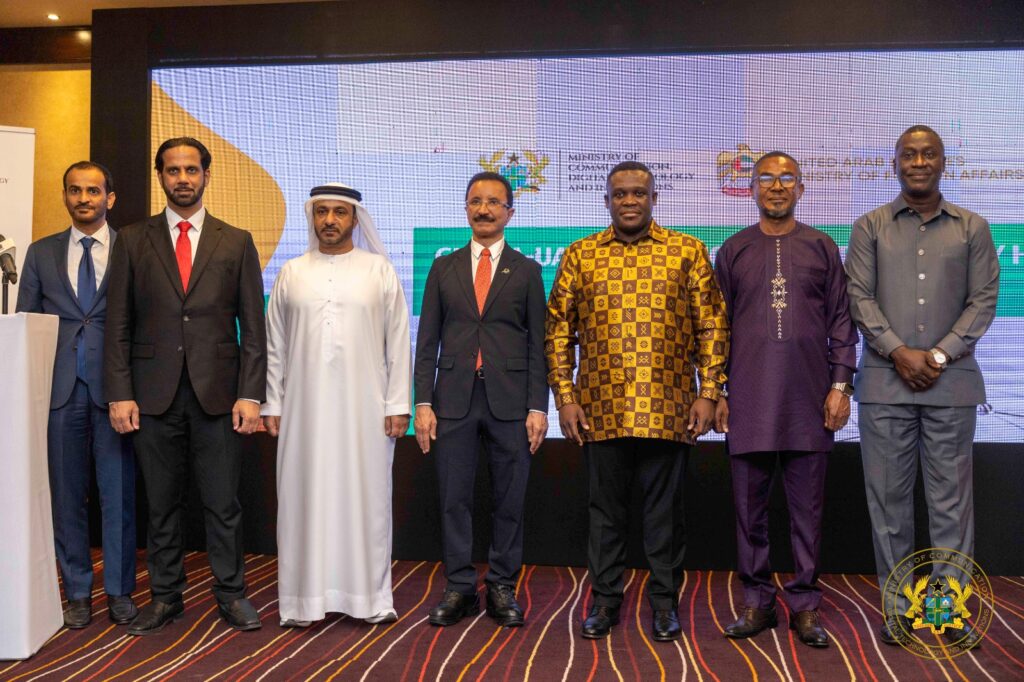 The Ministry of Communication, Digital Technology, and Innovations (MoCDTI) has signed a Memorandum of Understanding (MoU) today (29-05-25) with the Dubai Ports, Customs and Free Zone Corporation (PCFC) and Presight AI to establish the Ghana-UAE Innovation and Technology Hub.