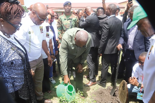 President John Dramani Mahama watering a seedling to commemorate the World Environment Day celebration...