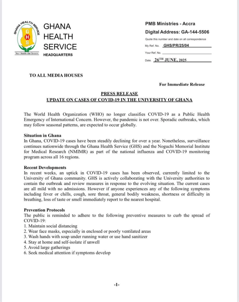 As part of ongoing efforts, GHS continues to conduct nationwide surveillance through its national influenza and COVID-19 monitoring programme. The health body is also collaborating with the Noguchi Memorial Institute for Medical Research (NMIMR) to enhance testing and data collection.