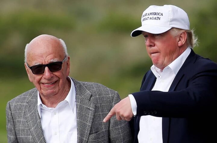 Murdoch (L) and Trump's relationship has been up-and-down over the years - pictured here...