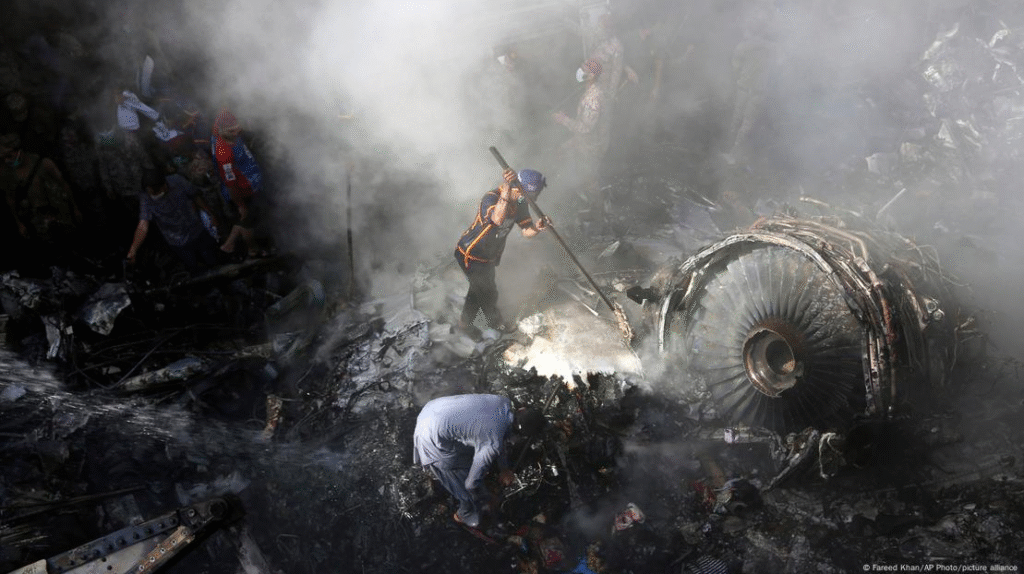 A scandal emerged after crash that killed 97 people in May 2020 when an aircraft crashed into a Karachi street. Image: Fareed Khan/AP Photo/picture alliance