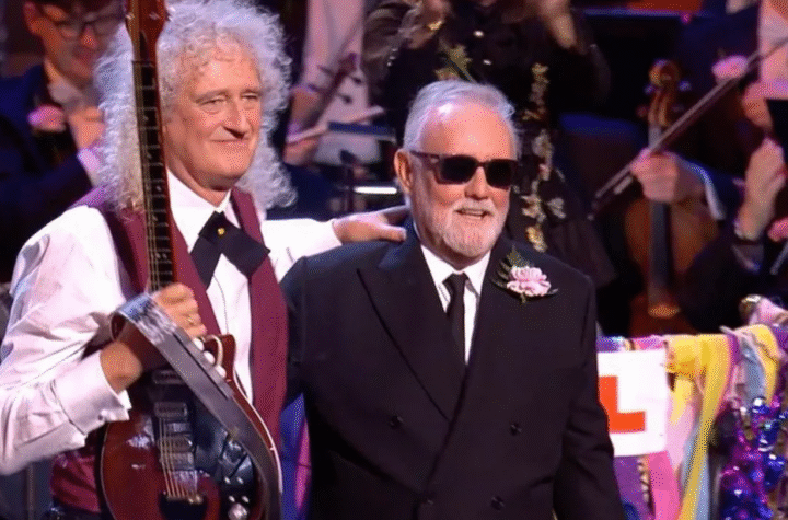 Sir Brian May (left) and Roger Taylor debuted a new orchestral arrangement of Bohemian...
