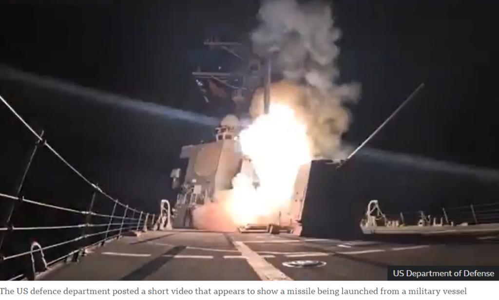 The US Department of Defense later posted a short video that appeared to show a missile being launched from a military vessel.